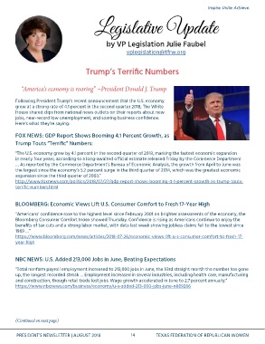 PRESIDENT’S NEWSLETTER | AUGUST 2018 14 TEXAS FEDERATION OF REPUBLICAN WOMEN