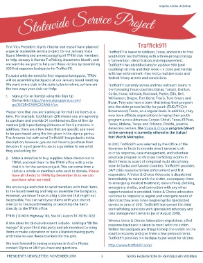 a special statewide service project for our January State Traffick911 is based in Addison, Texas, and exists to free