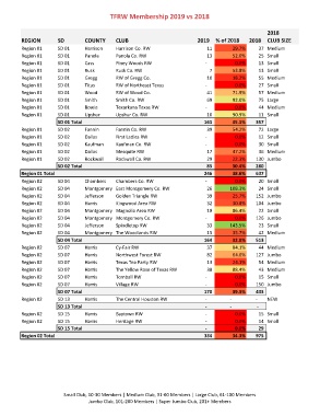 REGION SD COUNTY CLUB 2019 % of 2018 2018 CLUB SIZE