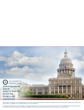 The President’s Newsletter is an official publication of the Texas Federation of Republican Women and is emailed monthly to its members. It contains information about